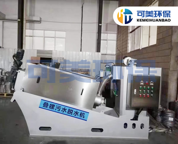 可美環保研制的疊螺式污泥脫水機主要由機架、螺旋軸、動環、靜環、隔環、雙頭螺栓、絮凝攪拌機、電氣控制箱等組成。